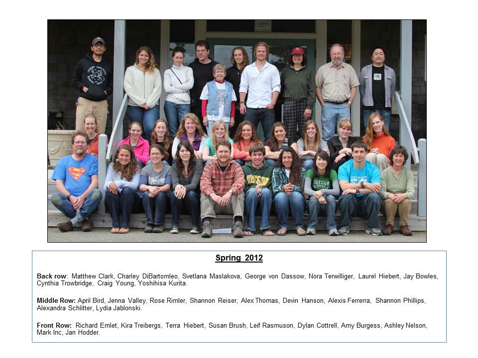 Spring 2012 -- OIMB, OIMB, Oregon Institute of Marine Biology -- Students, Class photo -- OIMB