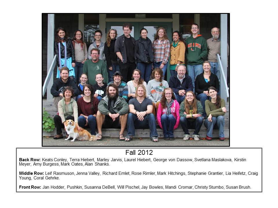 Back Row: Keats Conley, Terra Hiebert, Marley Jarvis, Laurel Hiebert, George von Dassow, Svetlana Maslakova, Kirstin Meyer, Amy Burgess, Mark Oates, Alan Shanks.