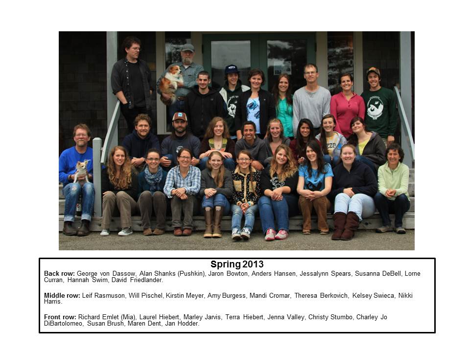 Back row: George von Dassow, Alan Shanks (Pushkin), Jaron Bowton, Anders Hansen, Jessalynn Spears, Susanna DeBell, Lorne Curran, Hannah Swim, David Friedlander.